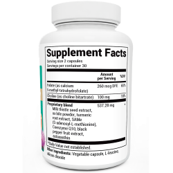 | Proprietary blend Choline bitartrate, milk thistle extract (Silybum marianum), ox bile extract, SAM-e (S-adenosylmethionine), turmeric root extract (95% curcumins), coenzyme Q10, astaxanthin, Bioperine® black pepper extract (95% piperine) |