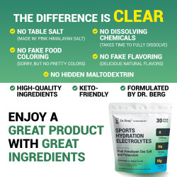 Dr. Berg Sports Drink provides you with a source of readily available natural electrolytes so that you can power through workouts and ensure that your muscles and nervous system operate at their peak potential. Experience improved workout performance without the many negative health effects of sugar or high fructose corn syrup.