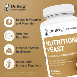 Support keto-adaptation, instantly relieve stress, and stop cravings with Dr. Berg Nutritional Yeast Tablets. Nutritional yeast is nature's best source of B vitamins, which support your mood, skin health, metabolism, and energy. Our Nutritional Yeast Tablets make it easy for you to replenish your B vitamins daily without added synthetic ingredients. Each bottle contains 270 tablets that are easy to chew or swallow.