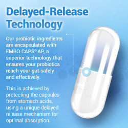 Our acid-resistant, delayed-release capsules have been designed to withstand the harsh acidity of stomach acid and digestive processes, supporting the optimal colonization of beneficial microbes. Take one capsule daily for simple, convenient probiotic support.