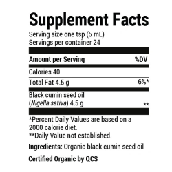 Organic Black Seed Oil - 4 fl oz Supplement Information