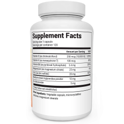 This daily supplement has 10,000 IU of vitamin D and 100 mcg of vitamin K2 in each capsule—the perfect ratio for supporting normal nutrient levels.