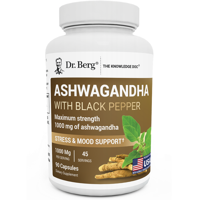 Harness the full power of ashwagandha root with Dr. Berg’s Ashwagandha with Black Pepper capsules. This maximum strength formula provides 1500 mg of ashwagandha per serving and contains high-quality black pepper extract for enhanced bioavailability. Ashwagandha is excellent for boosting your resistance to stress, improving your mood, supporting your immune system, and enhancing exercise performance. Each bottle is packed with a 30-day supply of phytonutrient-rich ashwagandha capsules.