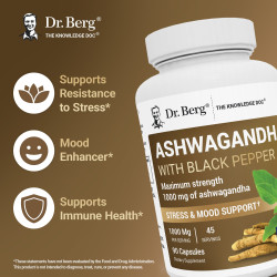Dr. Berg’s Ashwagandha with Black Pepper is the best way to naturally boost your resistance to stress and anxiety and improve your mood. We use only the highest quality ingredients and add zero fillers, preservatives, additives, or other harmful chemicals. This maximum strength formula provides 1500 mg of ashwagandha per serving and contains high-quality black pepper extract for enhanced bioavailability.